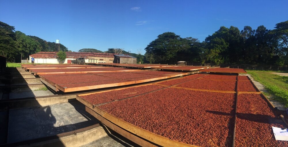 Ein tropischer Terroir-Kakao aus einer einzigen Farm mit Säure, Kaffeearomen, Karamell, Honig und Kokosnuss.