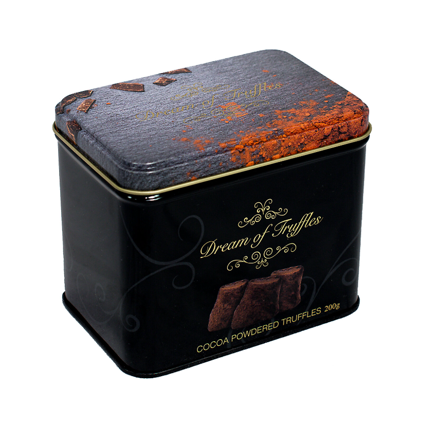 Ein wunderbar cremiger schwedischer Premium-Trüffel. Die Trüffel sind mit Kakaopulver bestäubt und zergehen so richtig im Mund. Jede Dose enthält ca. 20-22 Stück, 200g (min 10 Dosen)