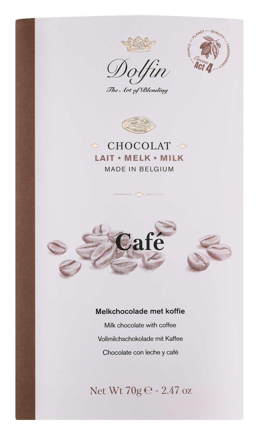 Startseite / - Belgische Vollmilchschokolade mit Kaffee von Dolfin – Feinste Schokolade mit aromatischen Kaffeestückchen, 70 g Tafel