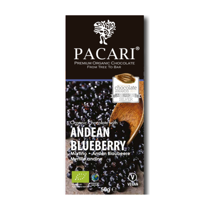 Die Blaubeere ist eine Moorfrucht, deren Geschmack in Ecuador seit Jahrhunderten verehrt wird und die ihn zum bestgehüteten Geheimnis der Anden macht. Erleben Sie es in pacari feinen Edelschokolade mit 60% ecuadorianischem Kakao. Diese Schokolade hat die Silbermedaille Americas 2017 bei den internationalen Chocolate Awards gewonnen.