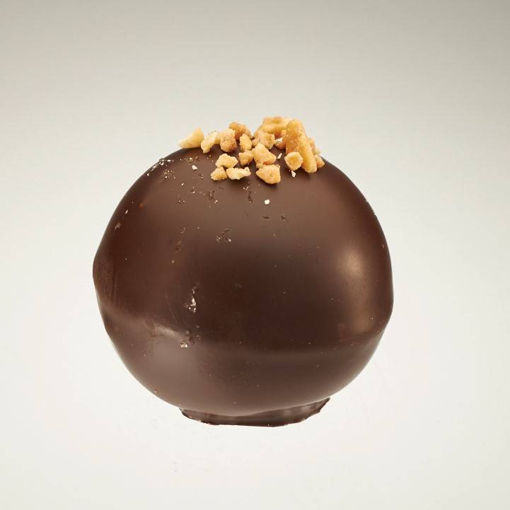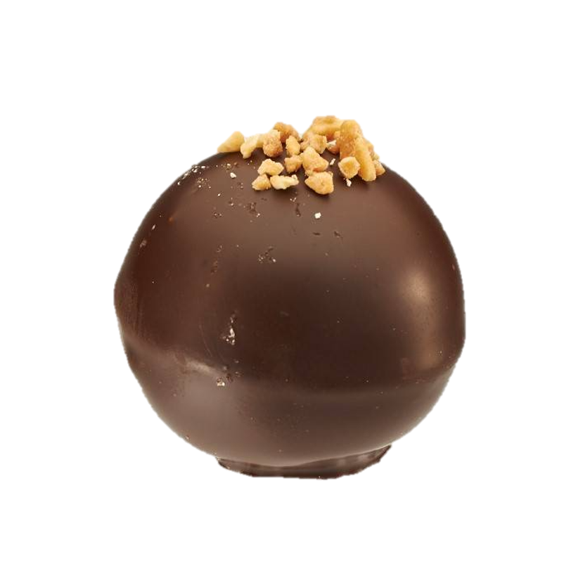 Eine feinherbe Sahnetrüffelmasse wird mit bestem Himbeerdestillat abgerundet. Eine weitere Füllung besteht aus unserem selbstgemachten Himbeermark.