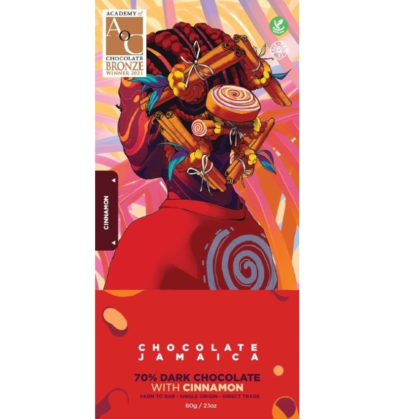 Bronze bei der Academy of Chocolate. Ein jamaikanisches Sprichwort sagt: „We likkle but we tallawah“ (wir mögen klein sein, aber wir sind mutig). Und das verkörpert diese Tafel mit jamaikanischem Zimt.