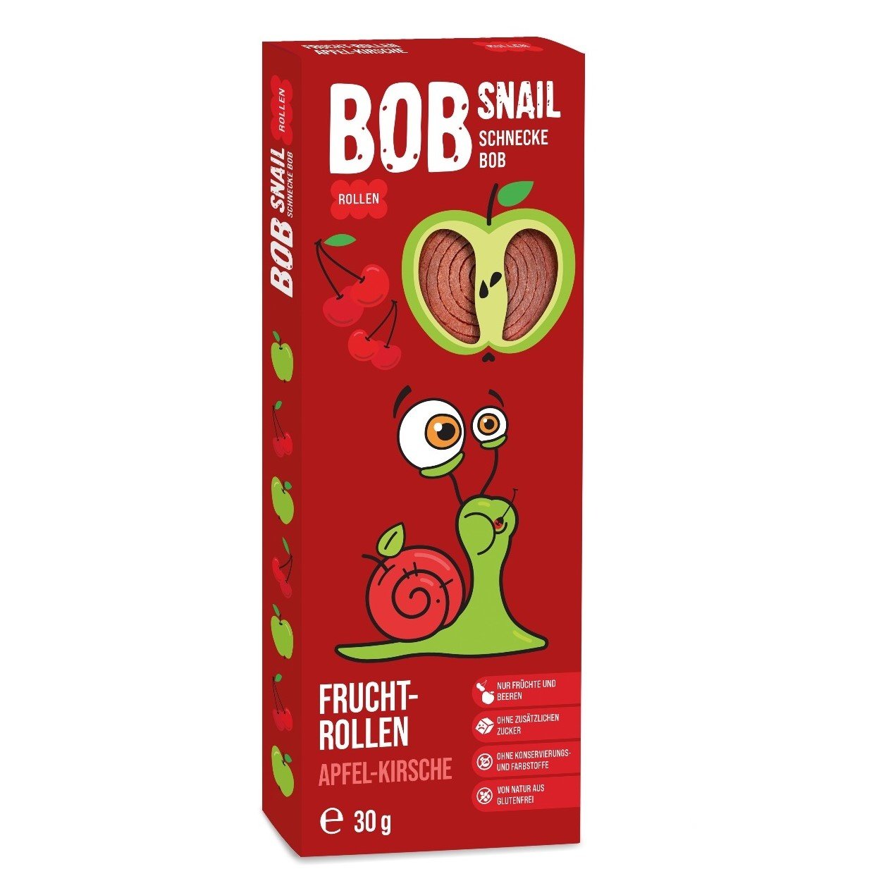 Bob Snail Fruchtrollen Apfel-Kirsche – 100% natürliche Zutaten, ohne Zuckerzusatz & Konservierungsstoffe. Fruchtig-süßer Snack aus reinen Äpfeln und Kirschen, schonend verarbeitet für maximalen Geschmack. Perfekt für unterwegs oder als gesunde Nascherei!