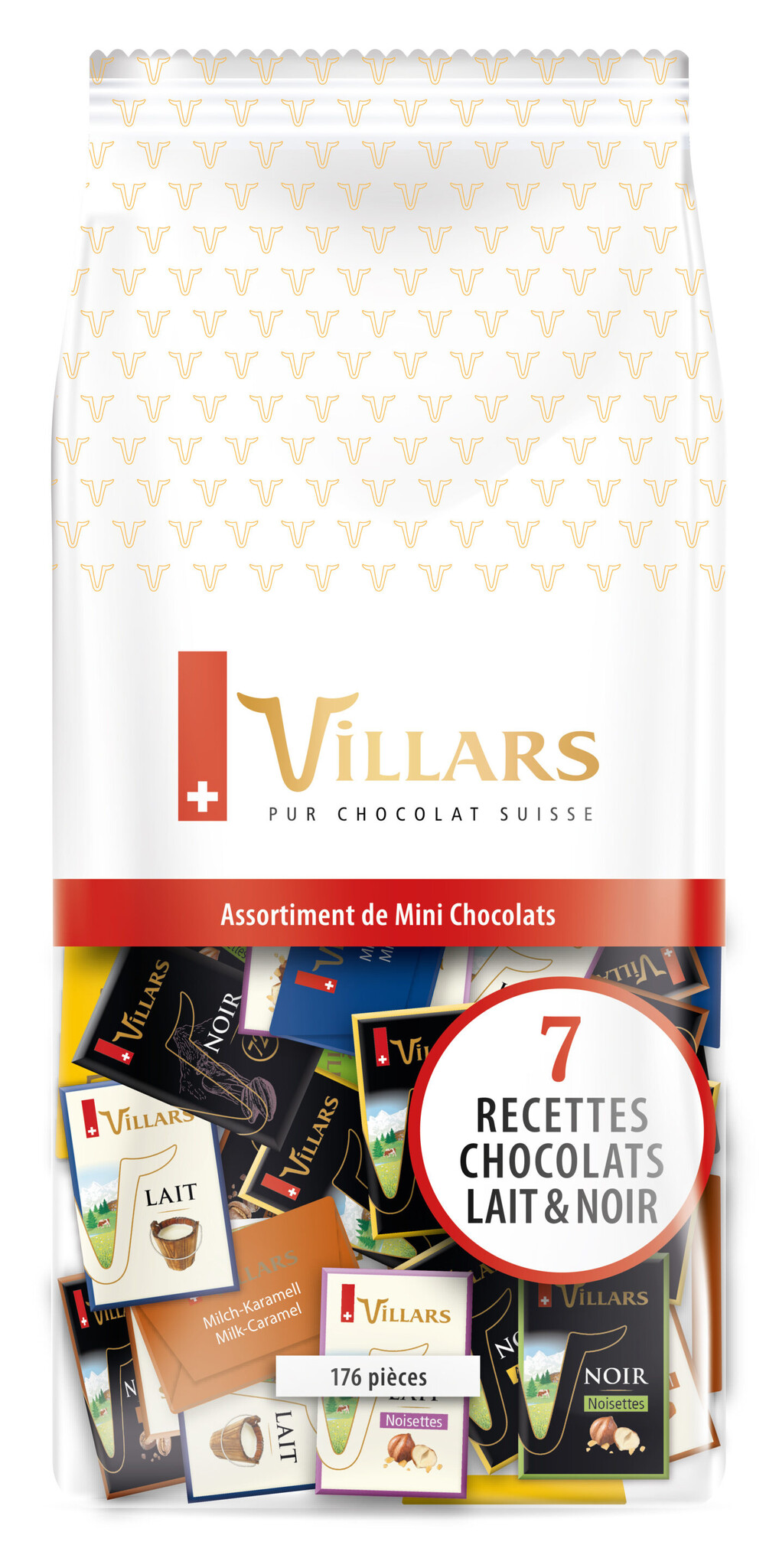 Der Villars Beutel enthält eine Auswahl an Mini-Napolitains aus Schweizer Milch- und Zartbitterschokolade. Die edlen Schokoladenhäppchen bieten die gewohnte Premium-Qualität im handlichen Format für genussvolle Pausen.