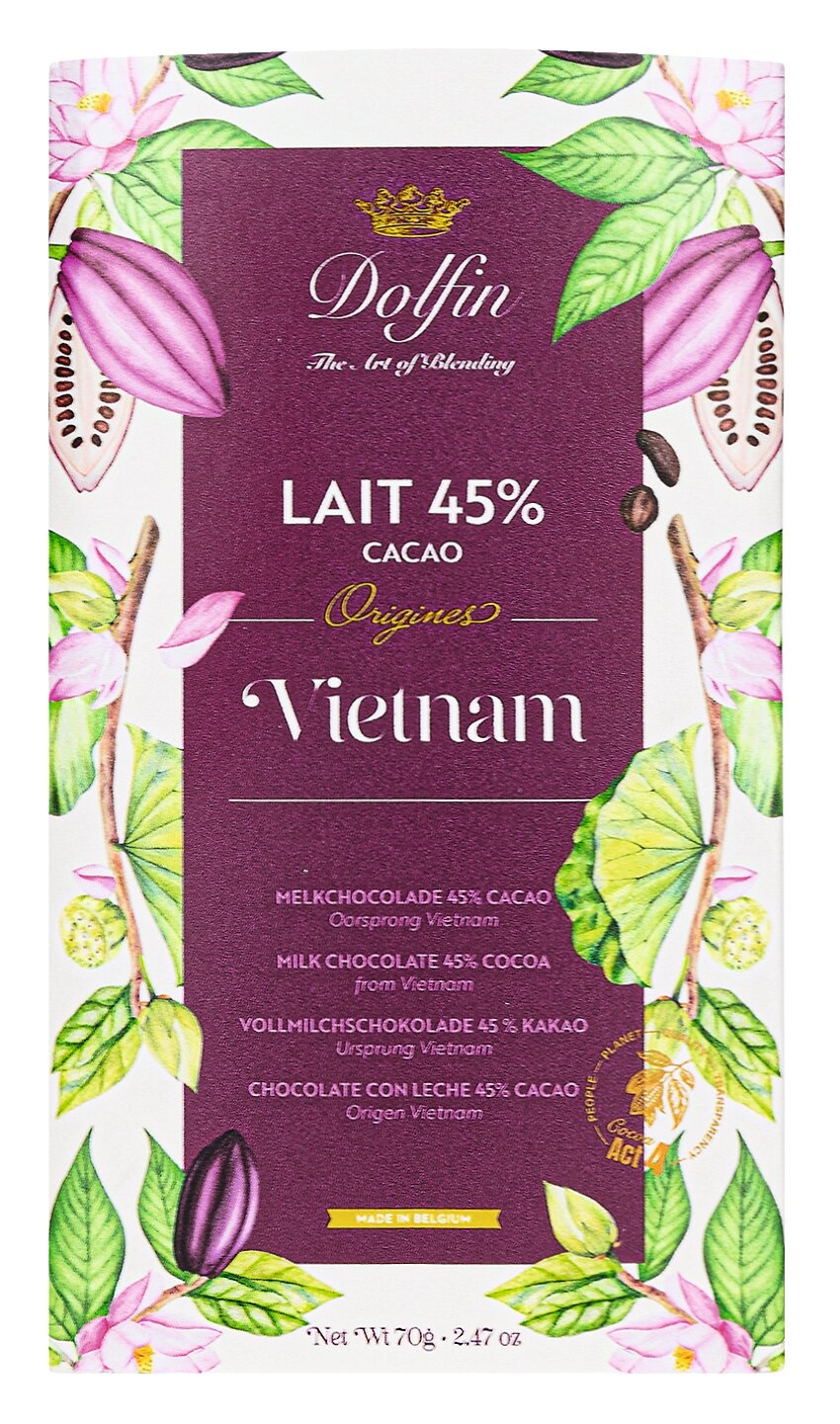 Startseite / - Dolfin Herkunfts-Kollektion: Vietnam Vollmilchschokolade mit 45 % Kakaoanteil